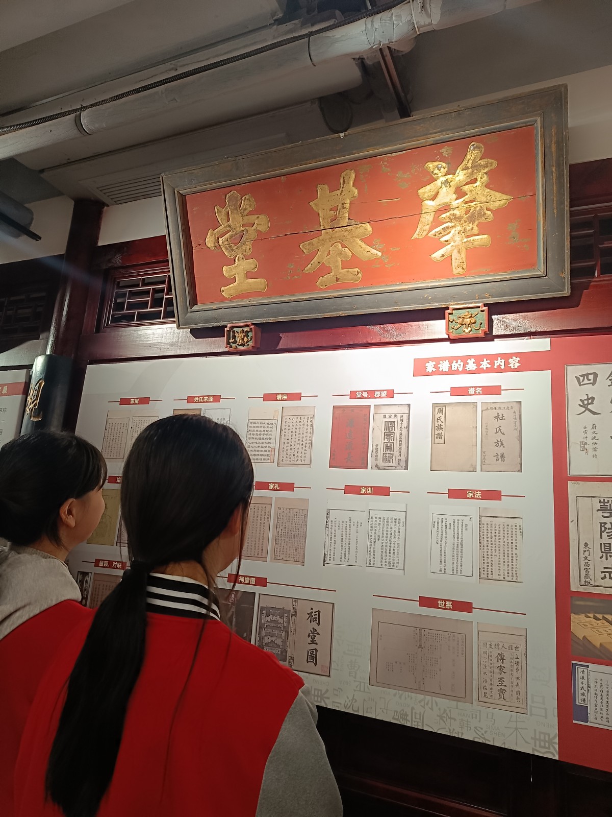 金牌讲解员以“姓氏长河”为线,从母系图腾讲到秦汉合流,一条时间轴把千年血脉拉成“看得见”的图景。随后,同学们围在清代《王氏宗谱》前,第一次读懂家谱“四件套”:谱序、世系、族规、家训。泛黄的纸页告诉大家——家风不是口号,而是可以量化的“家族使用说明书”。