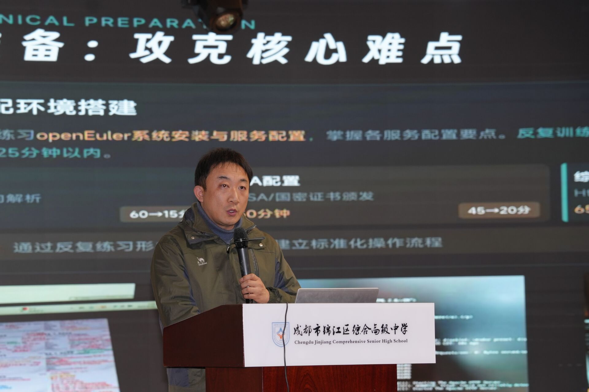 校长王军在主题发言中,以“汉语盘点2025” 年度国内字 “韧” 为核心线索,深刻阐释了教育坚守与创新的时代内涵。他指出,“韧” 是学校六十载从普通高中到国家级示范校的砥砺前行之基,是 “德业并进 知行合一”校训的薪火相传之魂,更是AI 时代教育者守正创新的定力之源。面对AI技术变革,王校长强调,教育的本质与温暖底色永不可替代,未来课堂应是“智能+人文”的共生图景,要让 AI 成为高效教学助手,让教师专注于情感滋养与精神引领;同时围绕综合高中建设,他提出要构建包容共生的育人环境、打造智能赋能的温暖课堂、培育坚韧成长的师生共同体,为 “职普融通、多元育人”的发展愿景绘就了清晰路径。