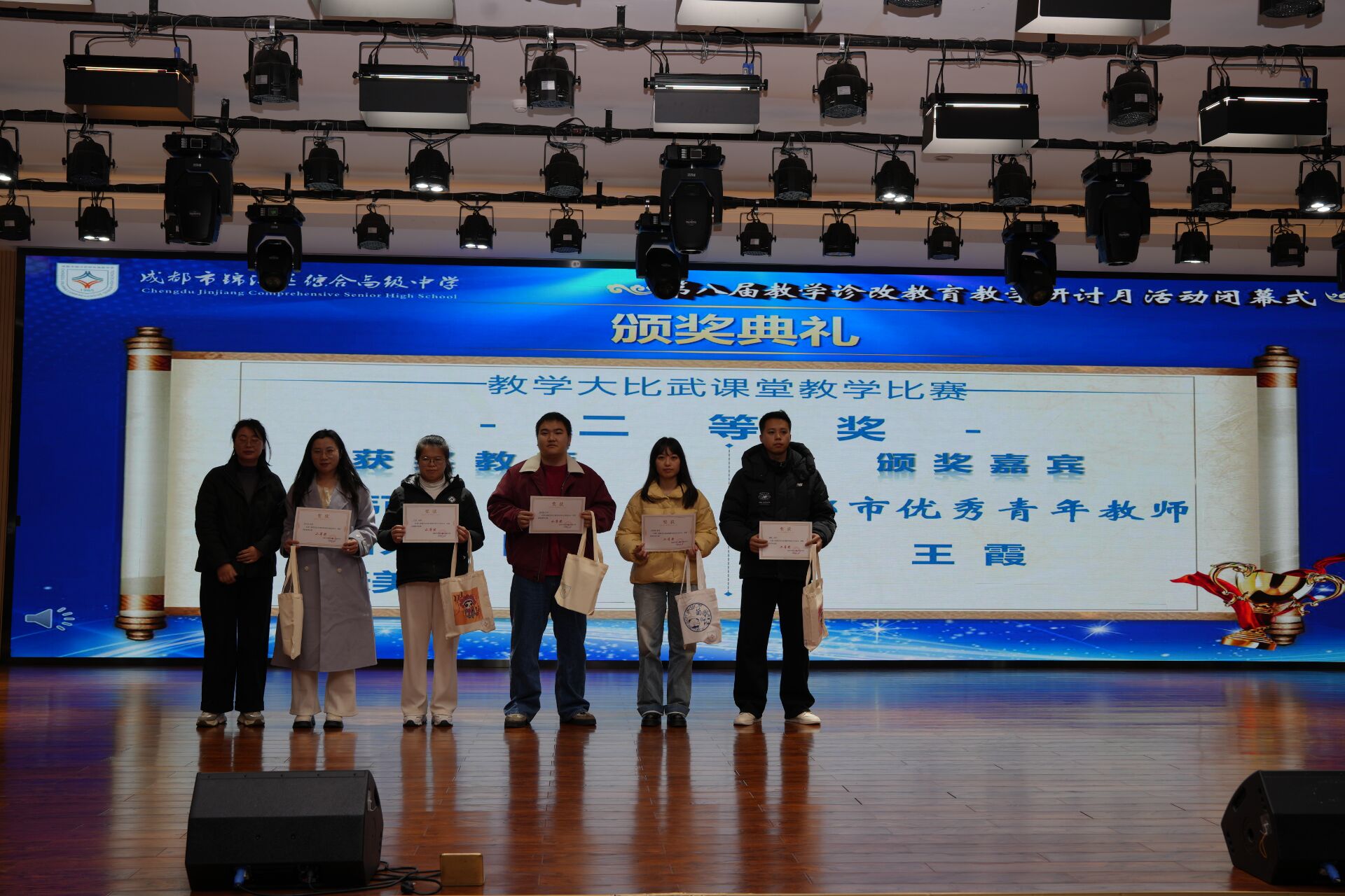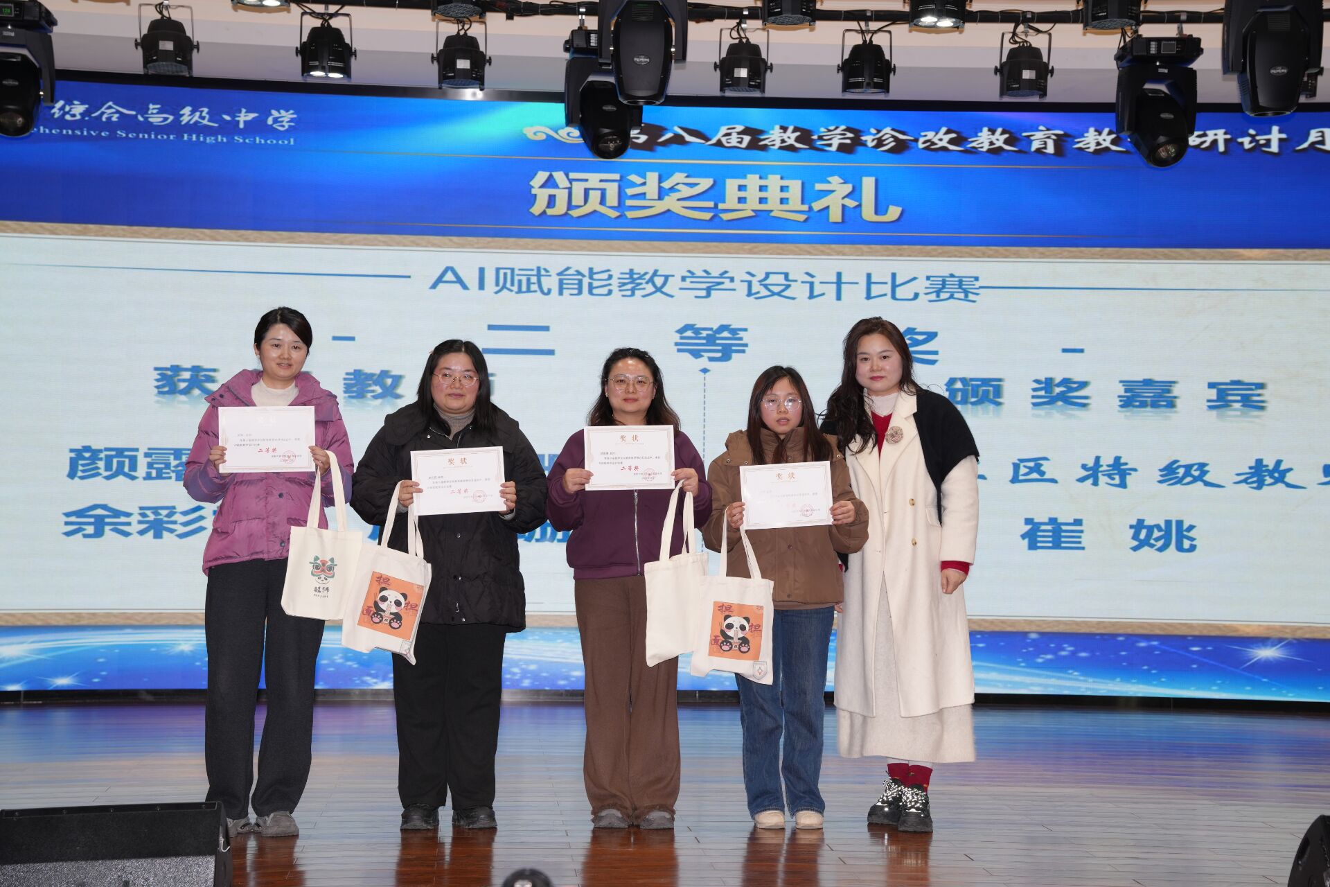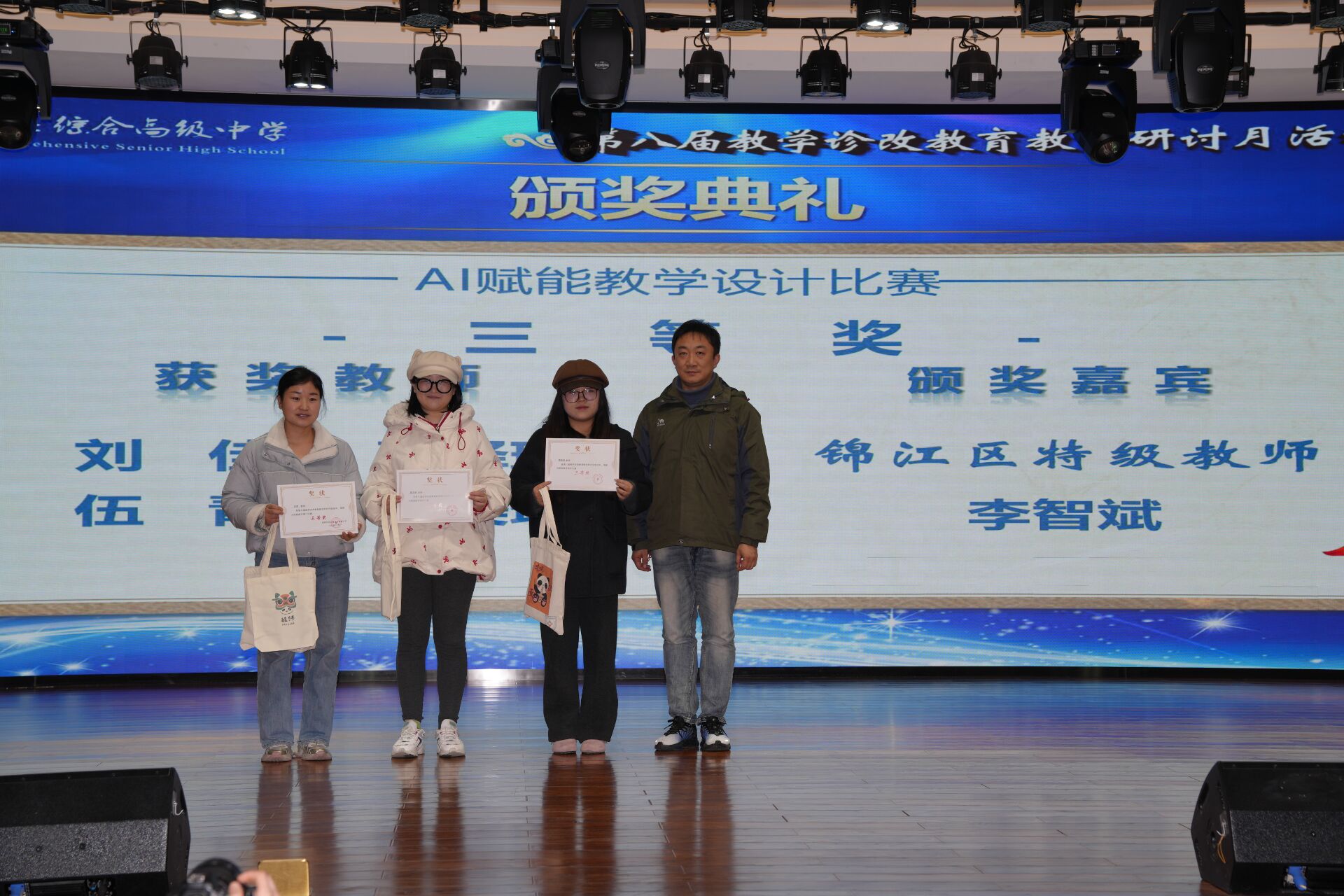 颁奖仪式上,学校为 AI 赋能教学设计比赛、课堂教学比赛的优秀教师颁发荣誉证书,表彰先进、树立榜样,进一步激发了全体教师的教学热情与创新动力。