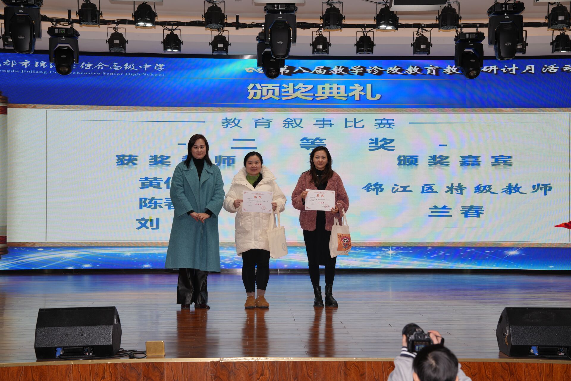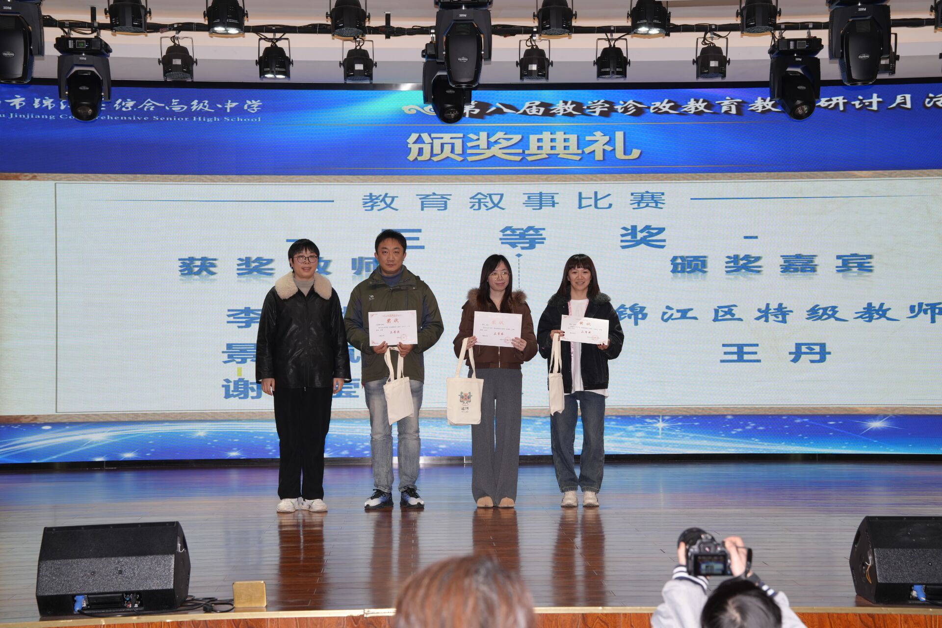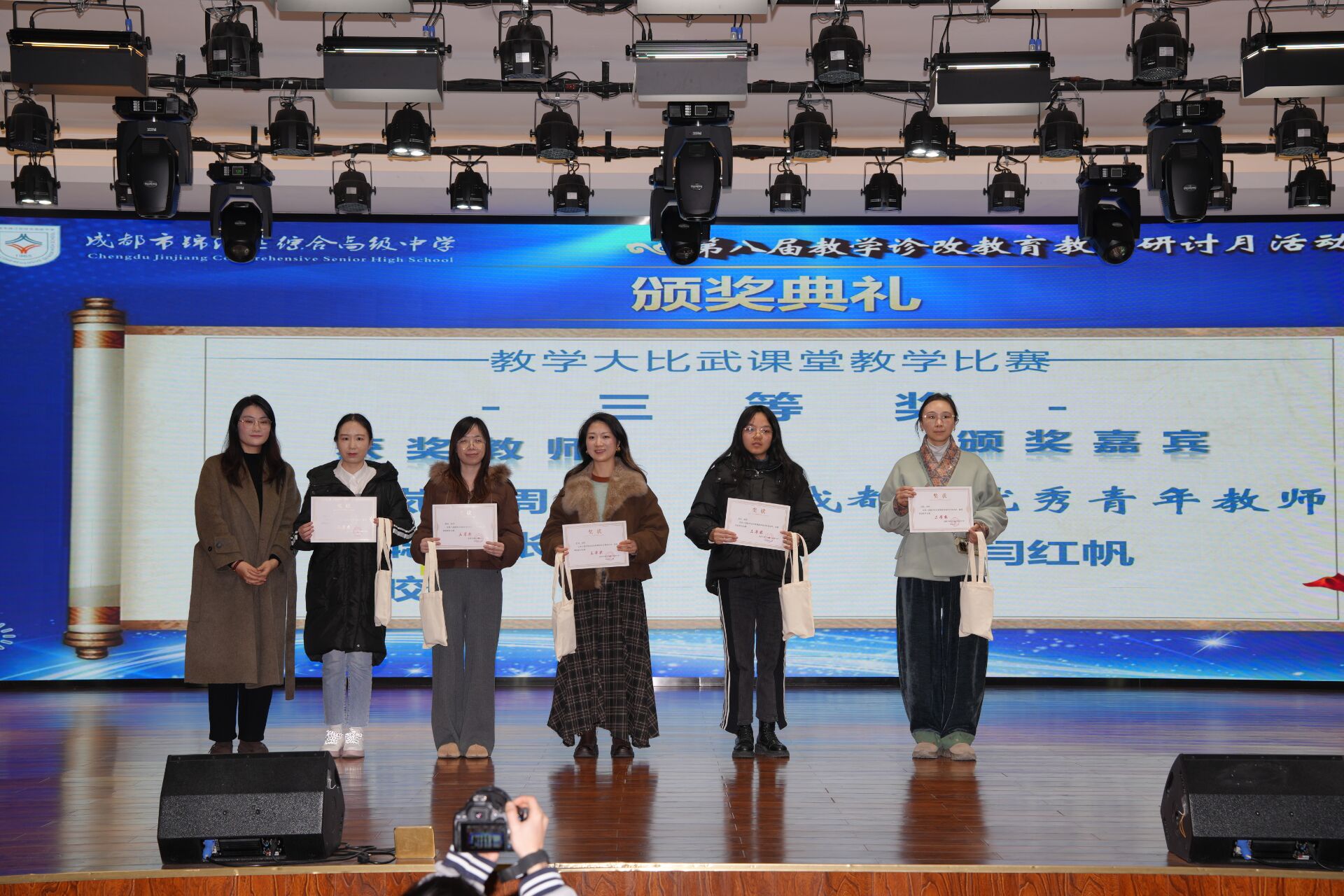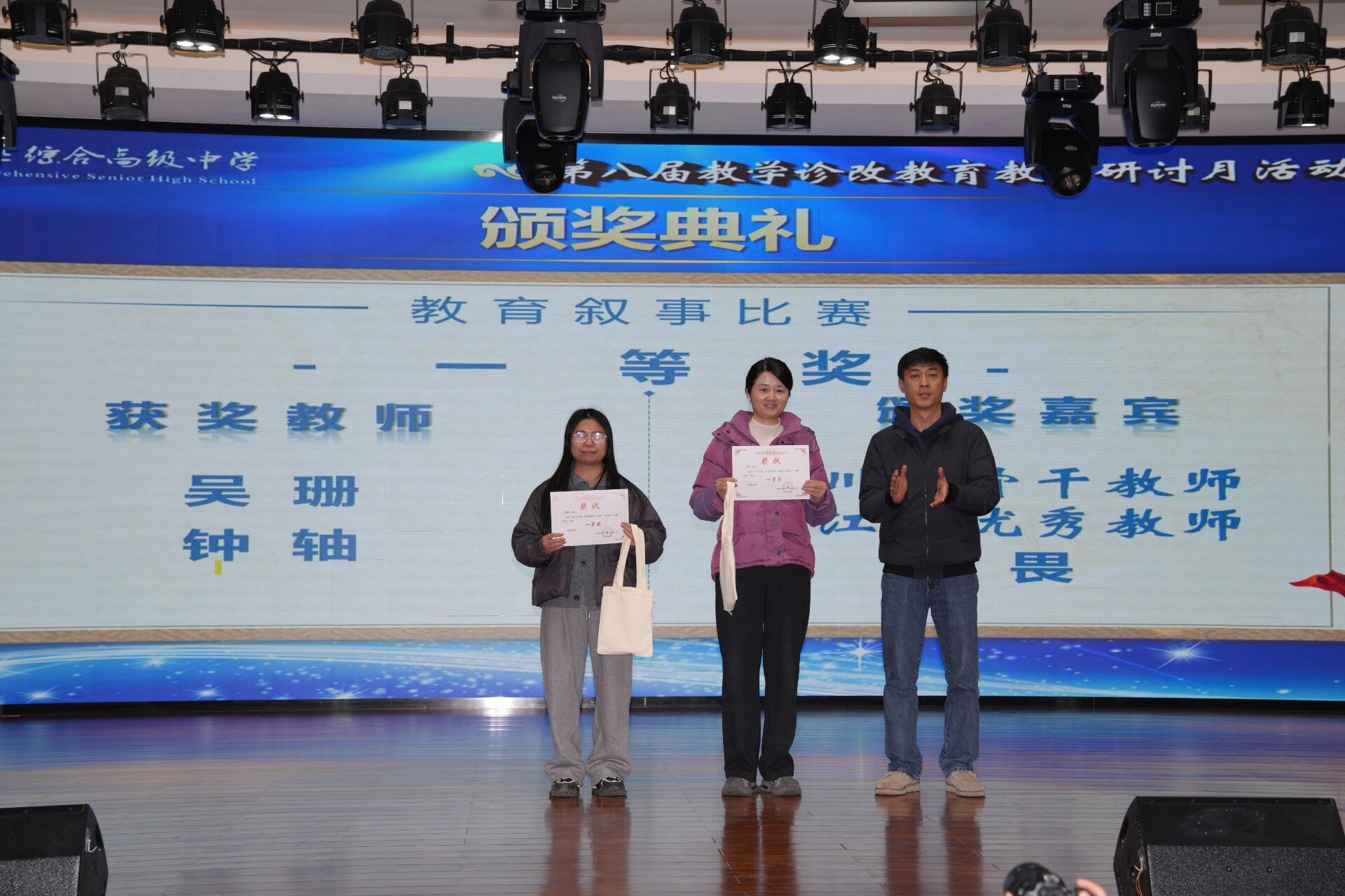 颁奖仪式上,学校为 AI 赋能教学设计比赛、课堂教学比赛的优秀教师颁发荣誉证书,表彰先进、树立榜样,进一步激发了全体教师的教学热情与创新动力。
