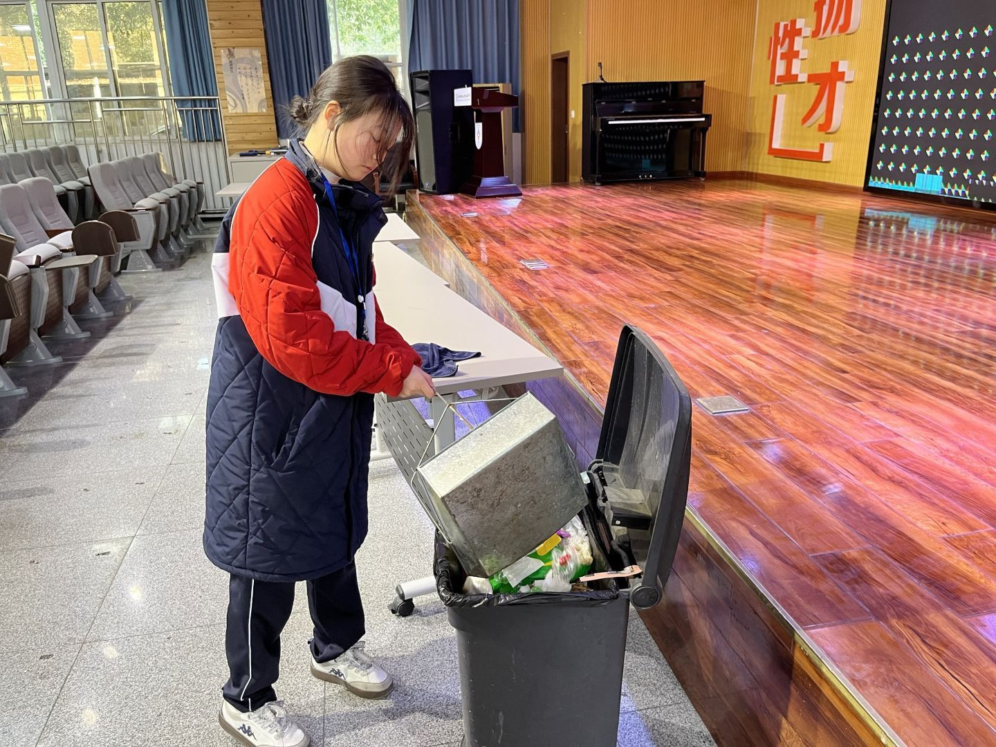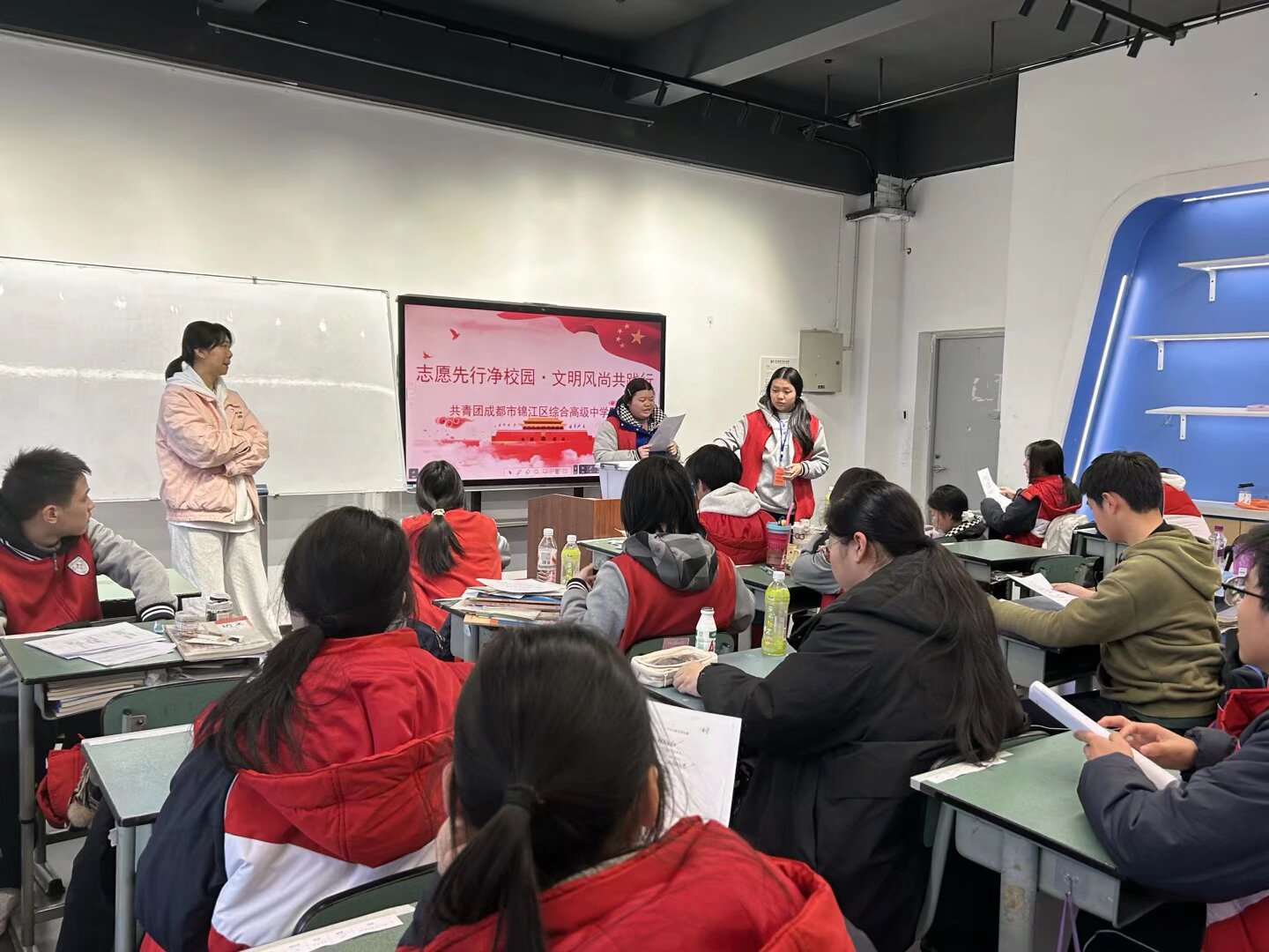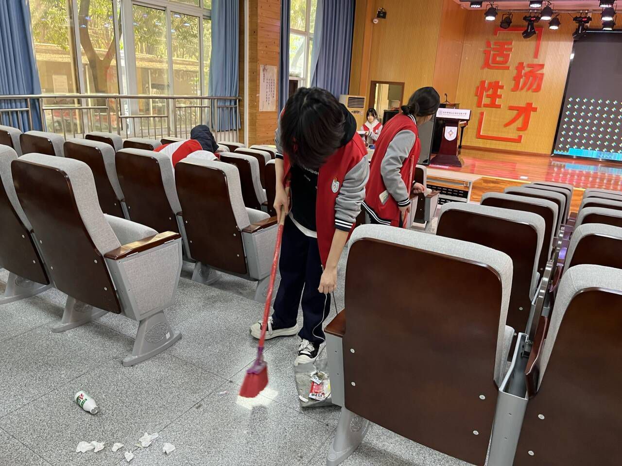 为深入弘扬志愿服务精神,充分发挥团员先锋模范作用,扎实推进校园文明建设,结合春节前大扫除的传统习俗,我校团委统筹部署,分阶段开展“阶梯教室清洁志愿服务”与“文明风尚主题宣讲”系列活动,以团员先行带动全员参与,让劳动美德扎根校园,让文明风尚浸润人心。