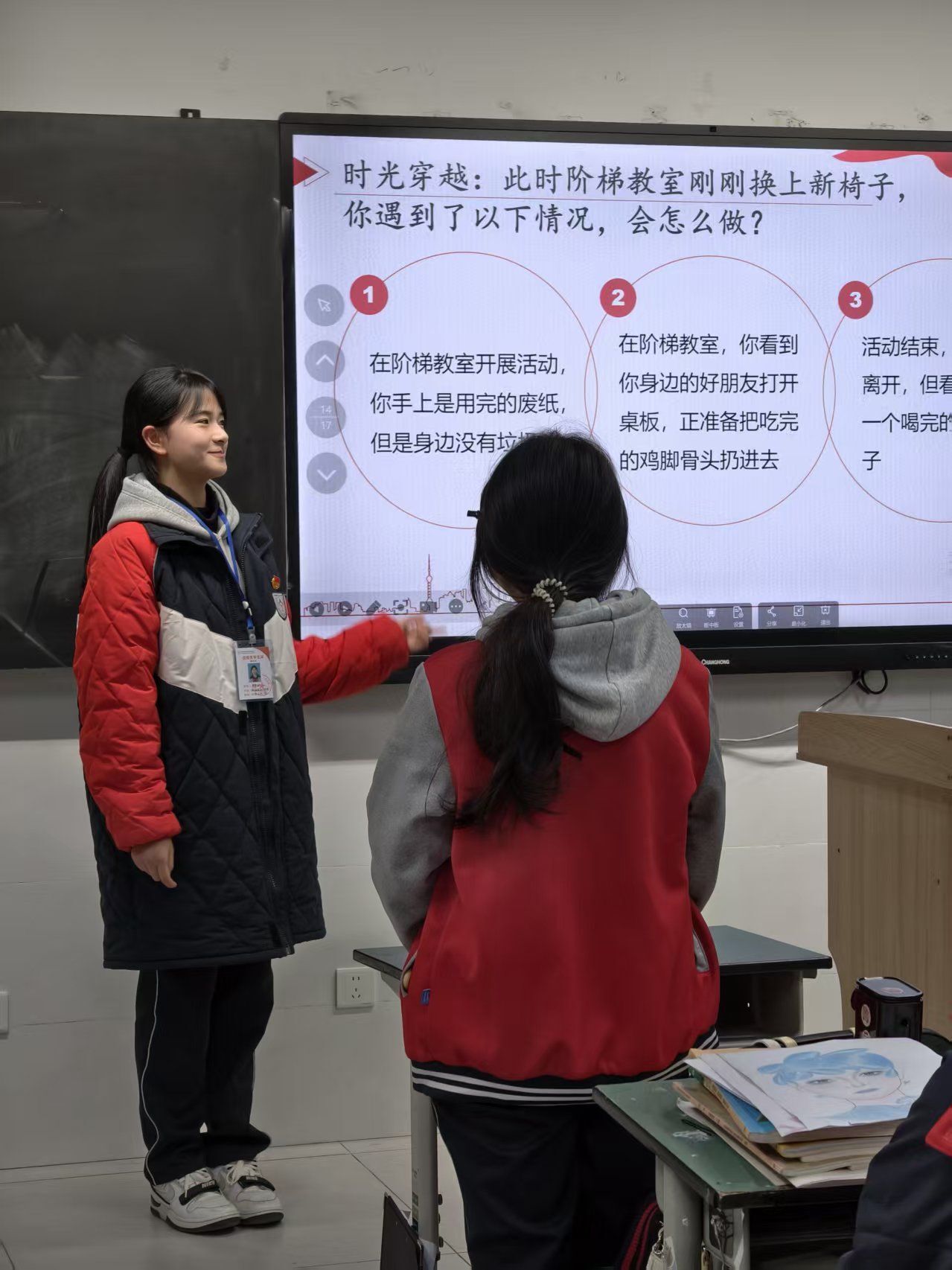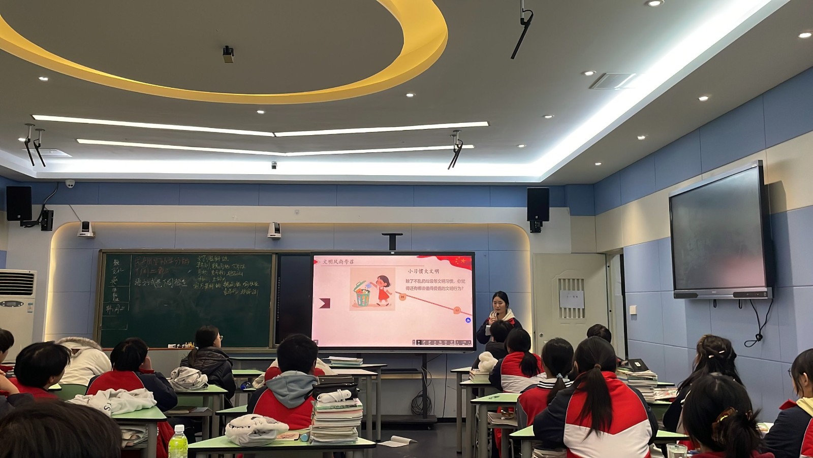 为扩大活动影响力,推动文明习惯深入人心,1月23日,各班团支书依托班级阵地,开展“志愿先行净校园,文明风尚共践行”主题宣讲。宣讲中,团支书们分享了团员志愿者清洁阶梯教室的劳动感悟与现场见闻,结合“破窗效应”通俗解读校园环境乱象的成因,倡导全体同学从“垃圾进垃圾桶”“随身带垃圾袋”等微小习惯做起,主动爱护校园环境;同时发出倡议,鼓励同学们积极参与家庭春节前大扫除,以家校联动的方式传承劳动美德,让志愿精神延伸至生活场景。宣讲过程中设置互动讨论环节,引导同学们主动思考文明习惯的重要性,凝聚“校园是我家,保洁靠大家”的共识。