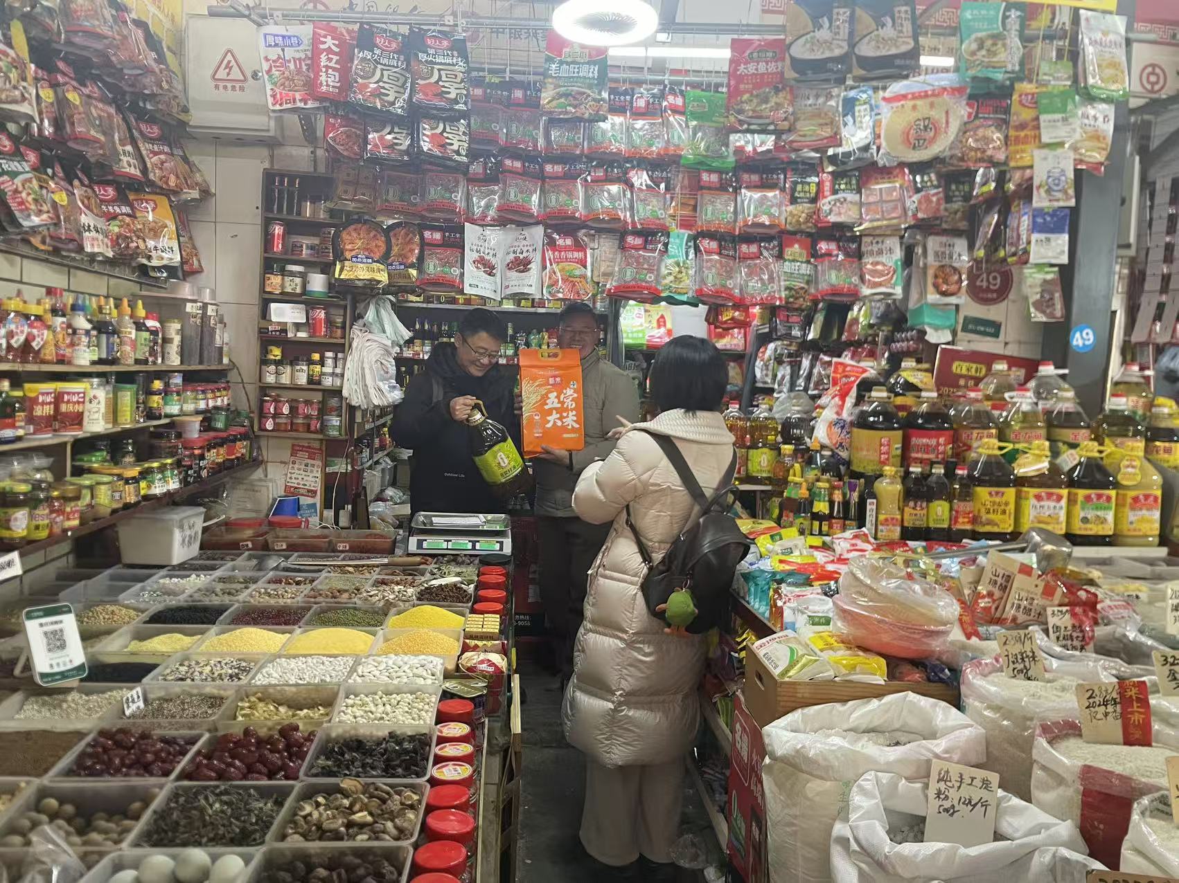 1月27日,师生代表带着义卖所得的爱心善款,采购了生活必需物资,走进长天路社区,亲切慰问了10户特殊困难家庭。活动中,学生们将“百姓糕”“百姓福袋”等文创产品的市场价值,转化为承载温情的金龙鱼菜籽油、五常大米等慰问品,送到居民手中。这是在社区精准对接下,师生们依据困难家庭的实际需求科学采购物资,圆满完成了从“文化创意”到“社会责任”的爱心传递。