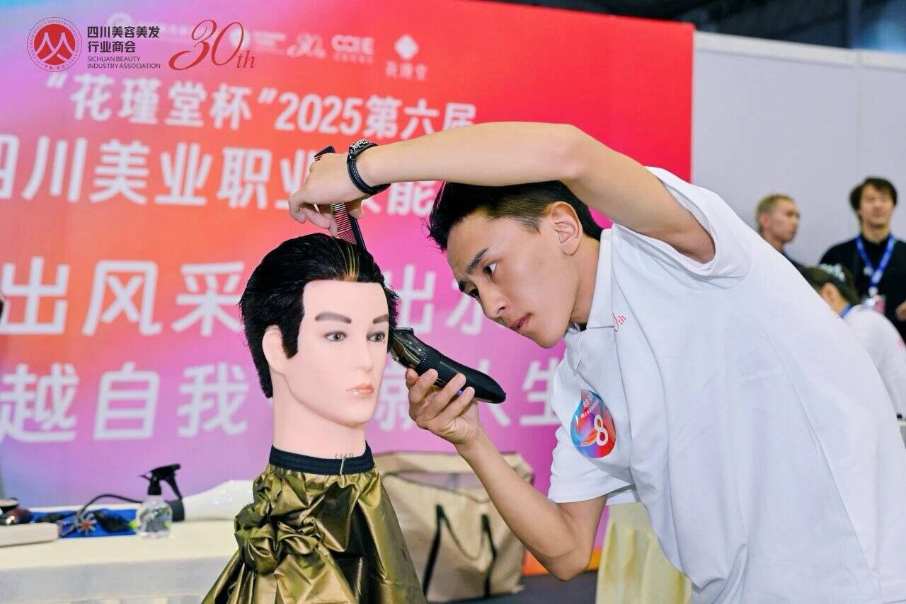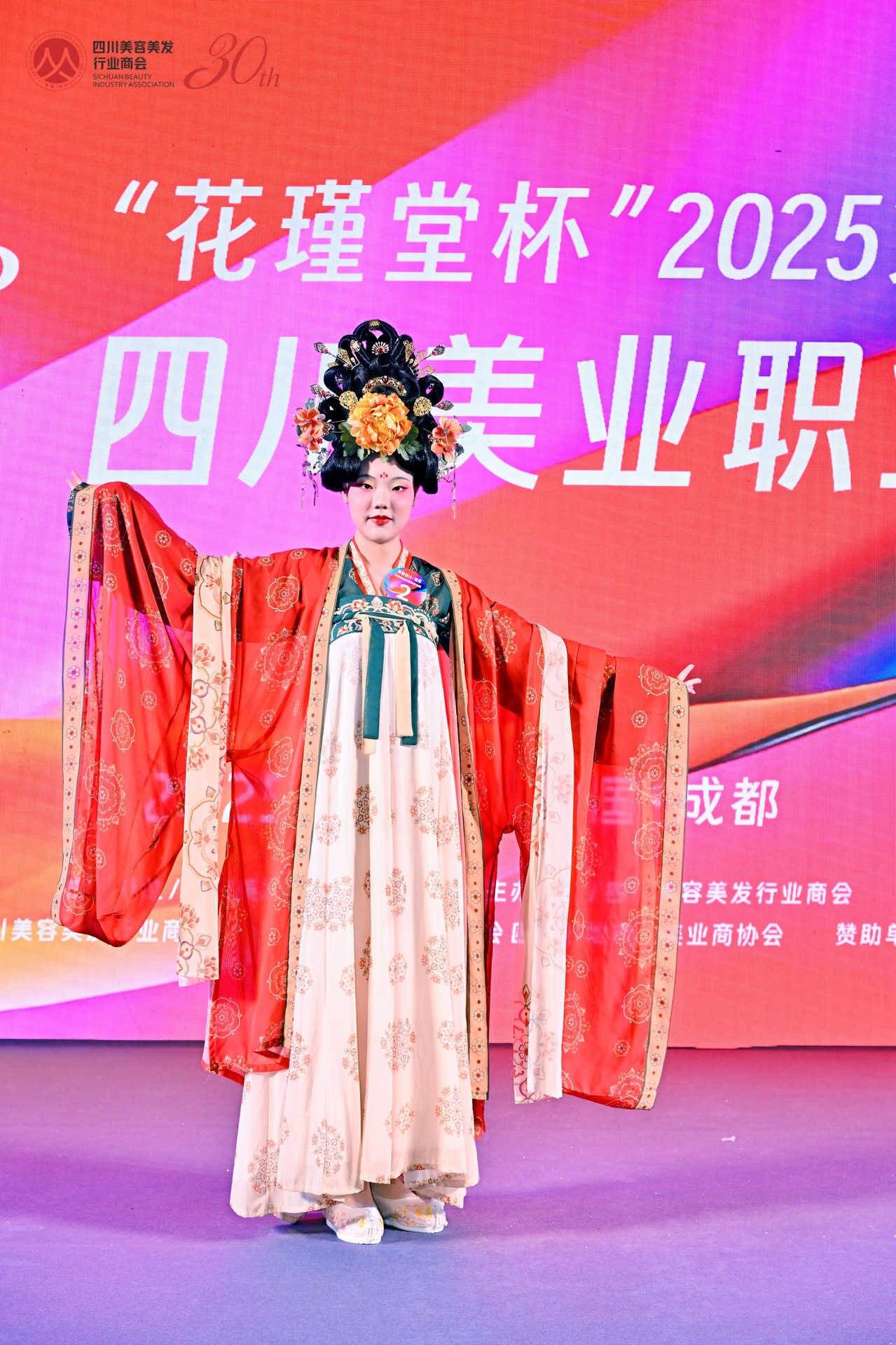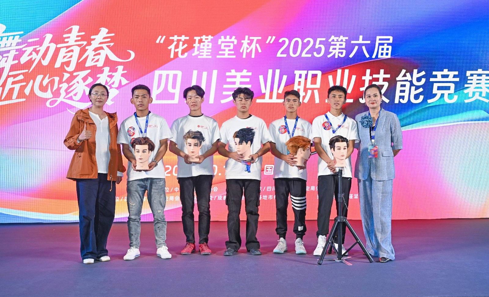 金秋十月,蓉城飘香。2025年10月17日,由中国美发美容协会指导、四川美容美发行业商会主办,2025第六届四川美业职业技能竞赛在成都世纪城新会展中心隆重举办。本次竞赛设美发、美容、形象设计(化妆)、美甲美睫四大赛项,分职工组与青年组(22周岁以下)两个组别,吸引全省 21个地市州近250名精英选手同台竞技。成都市锦江区综合高级中学艺术设计部美容美发专业选派35名学子,凭借扎实的专业功底、创新的设计思维与稳定的临场发挥,在竞赛中斩获2金7银15铜及若干优秀奖项,学校荣获“优秀组织奖”。