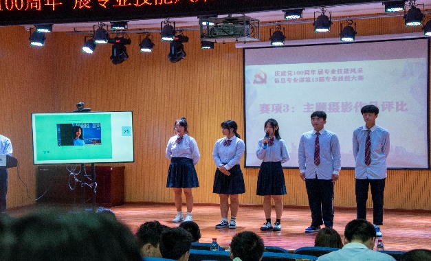 本次技能大赛,不仅是专业技能的大比武,也是爱国主义课堂、环保意识讲堂。进入决赛现场的建党100周年主题电子小报,是从整个专业部近200份作品中脱颖而出的,在制作电子小报的过程中,同学们查阅了大量的资料,学习了党的知识,增强了爱国主义情怀。此外,在制作垃圾分类主题电子小报查阅资料的过程中,也增强了同学们的环保意识。在比赛过程中,高2020级信息1班带来了诗歌朗诵《祖国啊,我亲爱的祖国》、合唱《打靶归来》,高2020级信息2班的同学也为大家献上了诗歌朗诵《追寻》,献礼建党100周年。